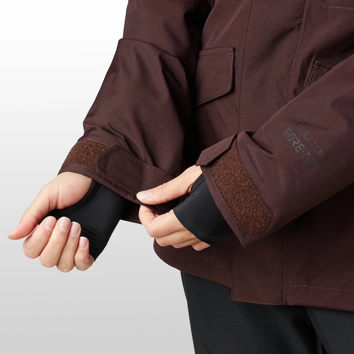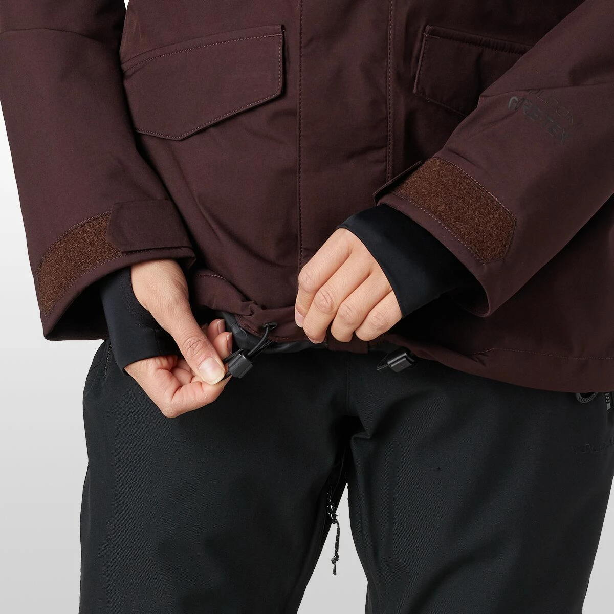 Hit the resort in the Volcom Leda Gore-Tex Jacket for an all-day shred session. With the waterproof, windproof, and breathable Gore-Tex 2-layer membrane, even the wettest snowstorms and gustiest days can’t send you into the lodge early. Fully taped seams add extra assurance that no chilly moisture will permeate into your layers, and the adjustable hood keeps your face free from pelting snow and cold, chafing wind.