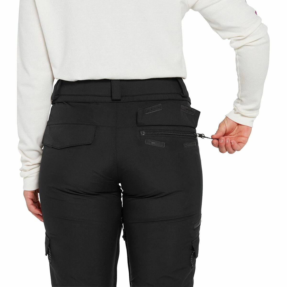 - Pockets: 2 zippered hand, 2 zippered back, 2 zippered thigh