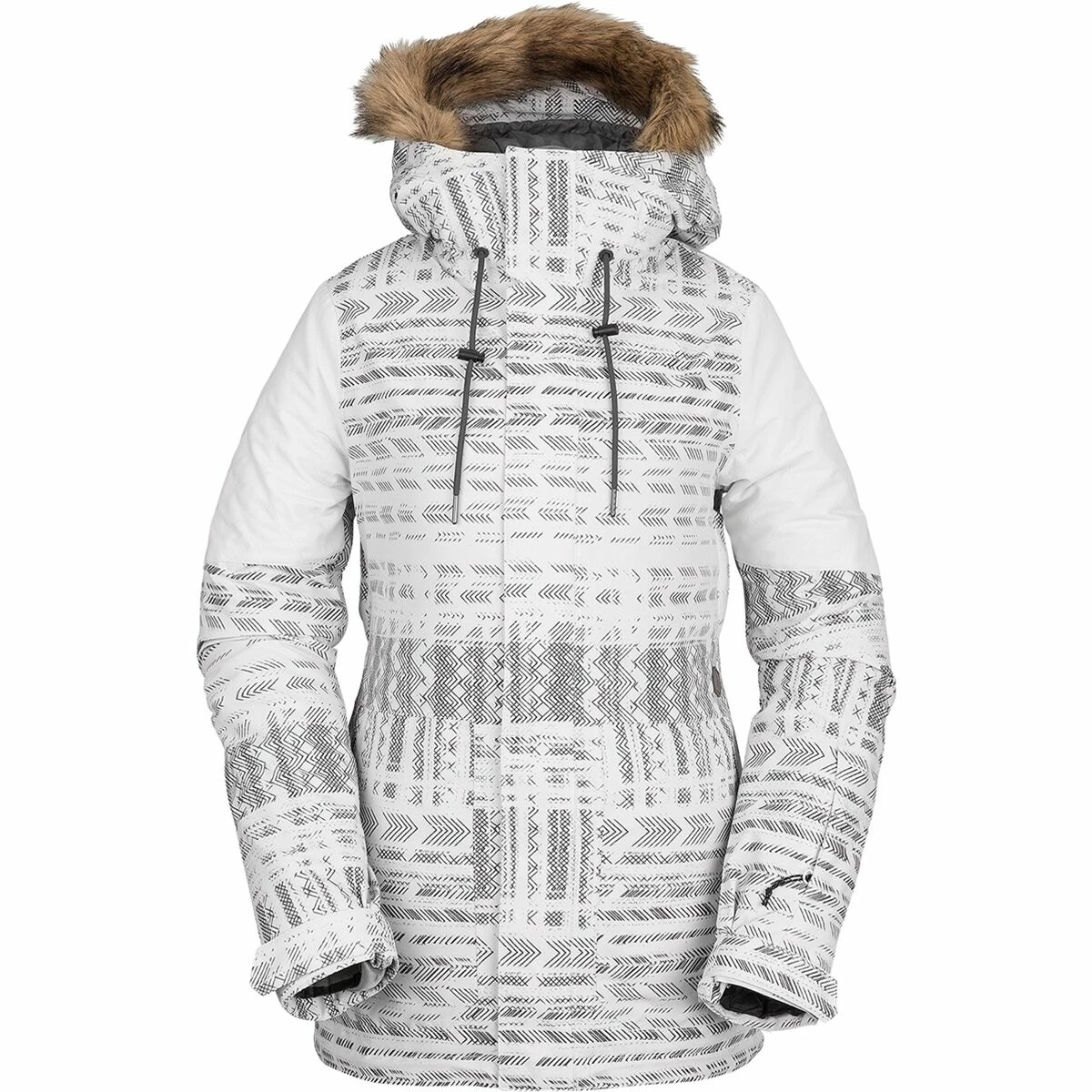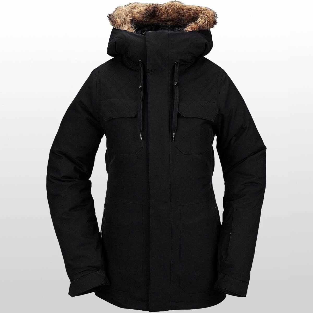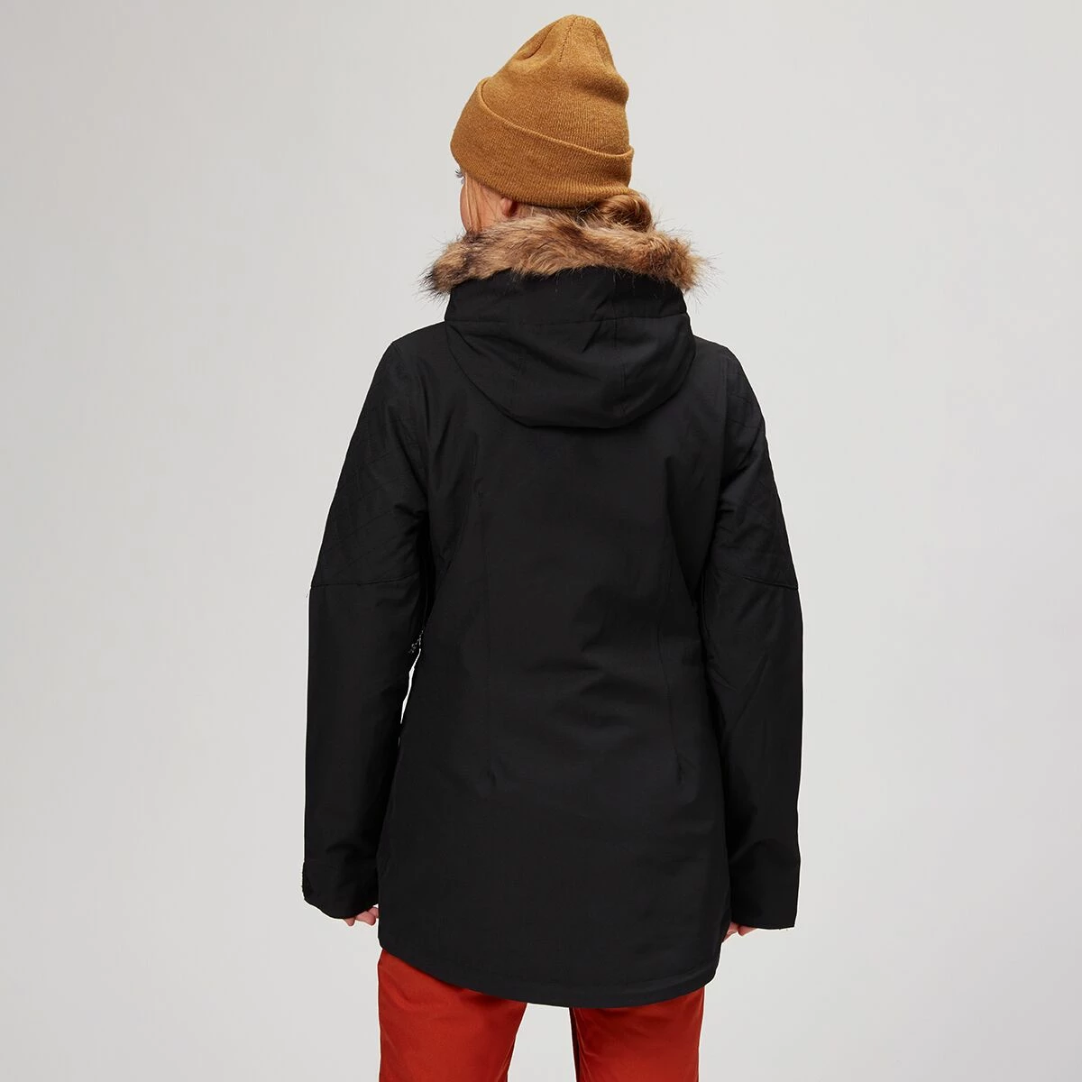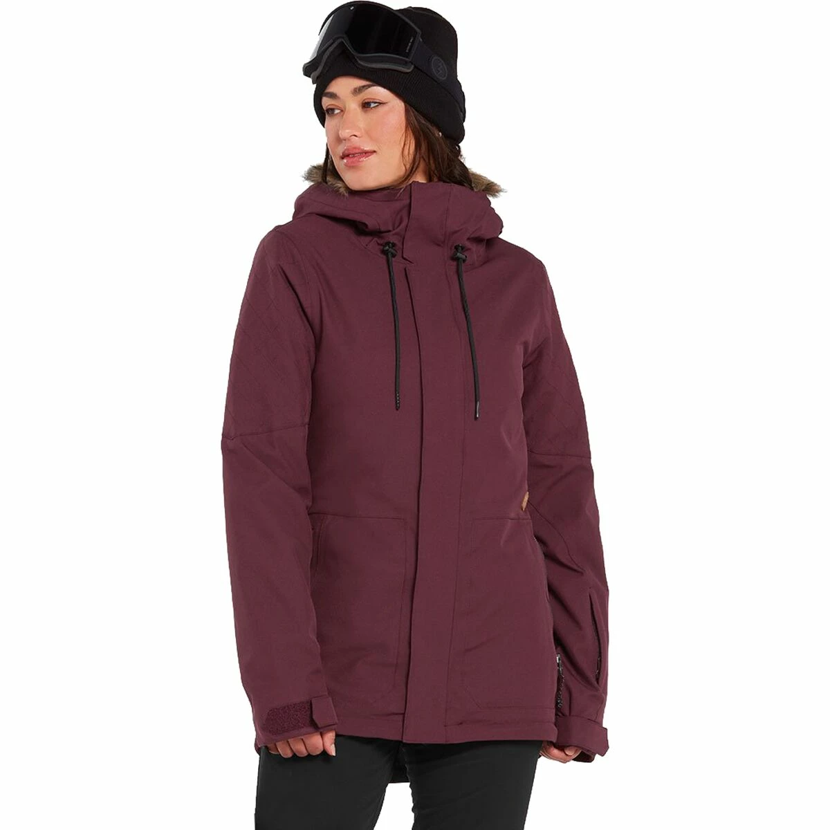 The Shadow Jacket brings a street-inspired style to the resort, thanks to the hoodโs removable faux fur trim and sleek front pockets. We donโt worry about a chill wind ruining our chairlift chats because of the jacketโs warm insulation and water-resistant finish.