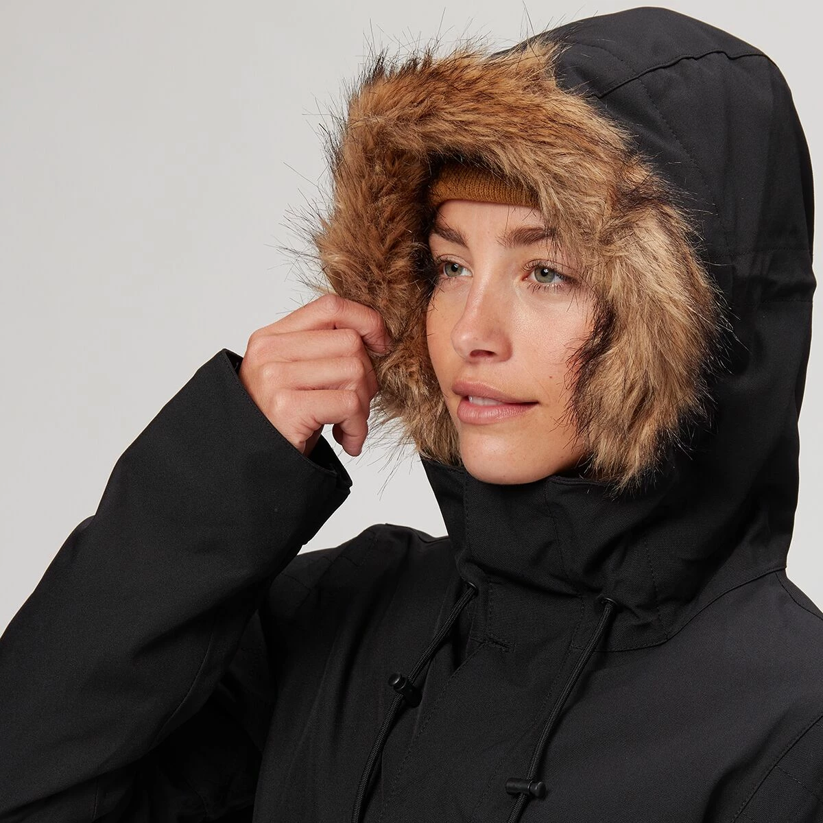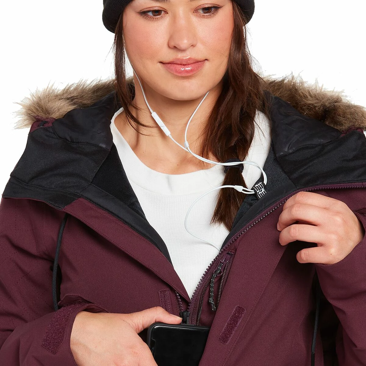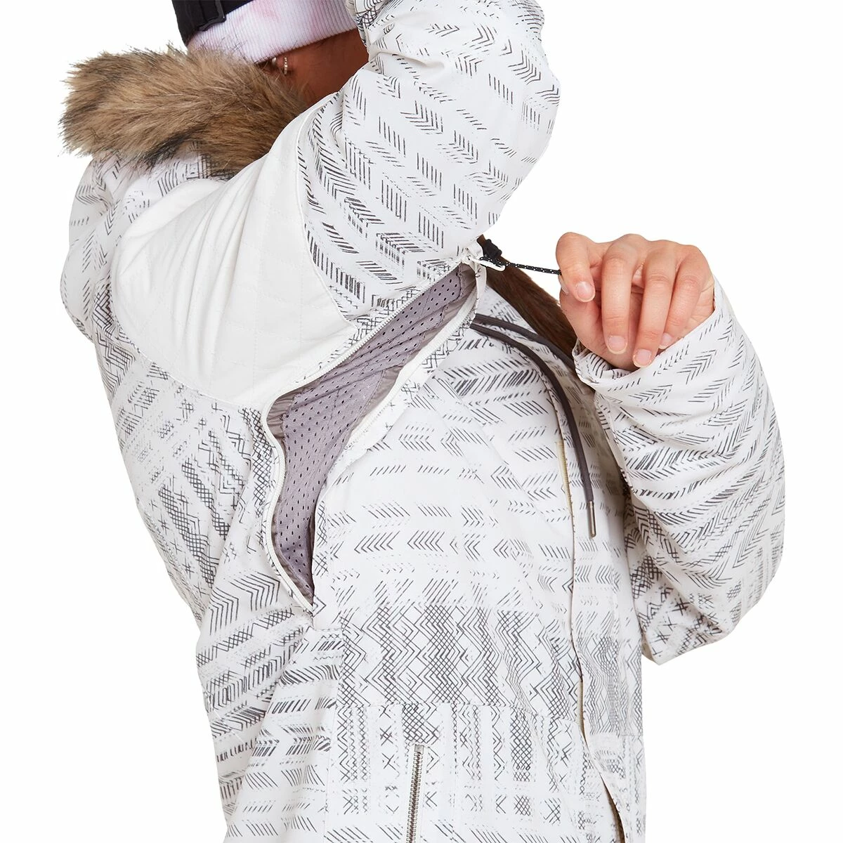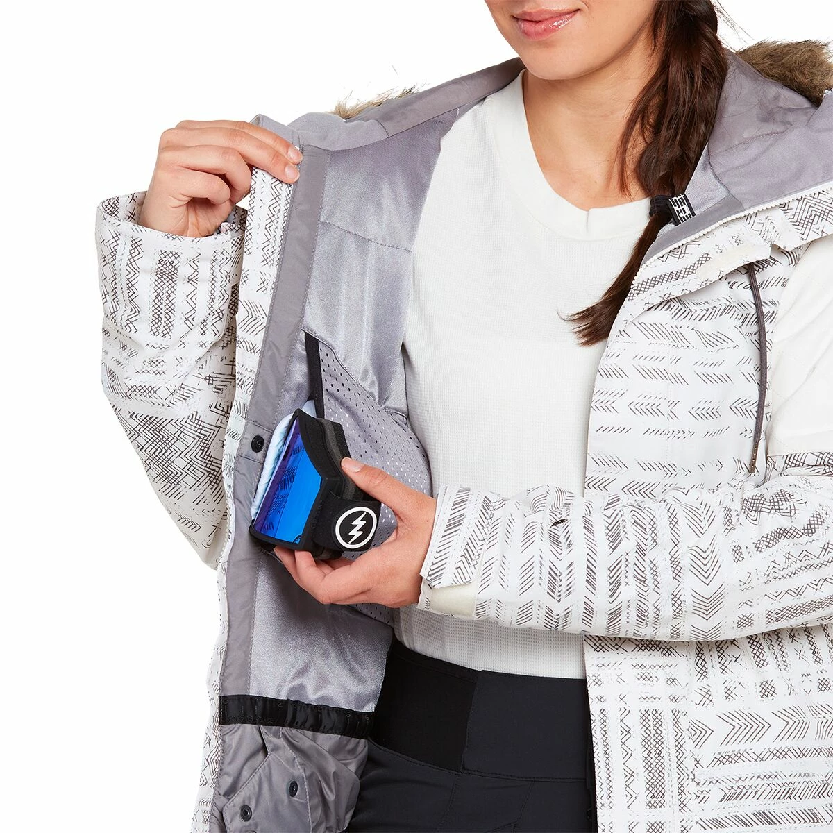 The Shadow Jacket brings a street-inspired style to the resort, thanks to the hoodโs removable faux fur trim and sleek front pockets. We donโt worry about a chill wind ruining our chairlift chats because of the jacketโs warm insulation and water-resistant finish.