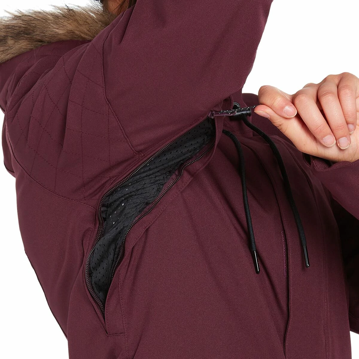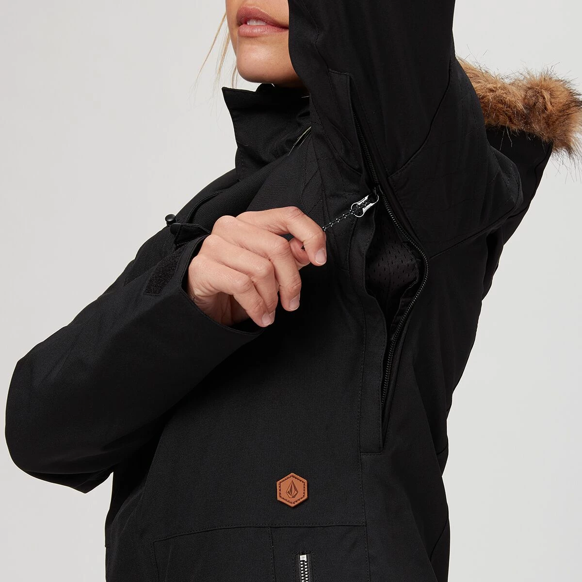 - Adjustable powder skirt zips to any Volcom snow pants