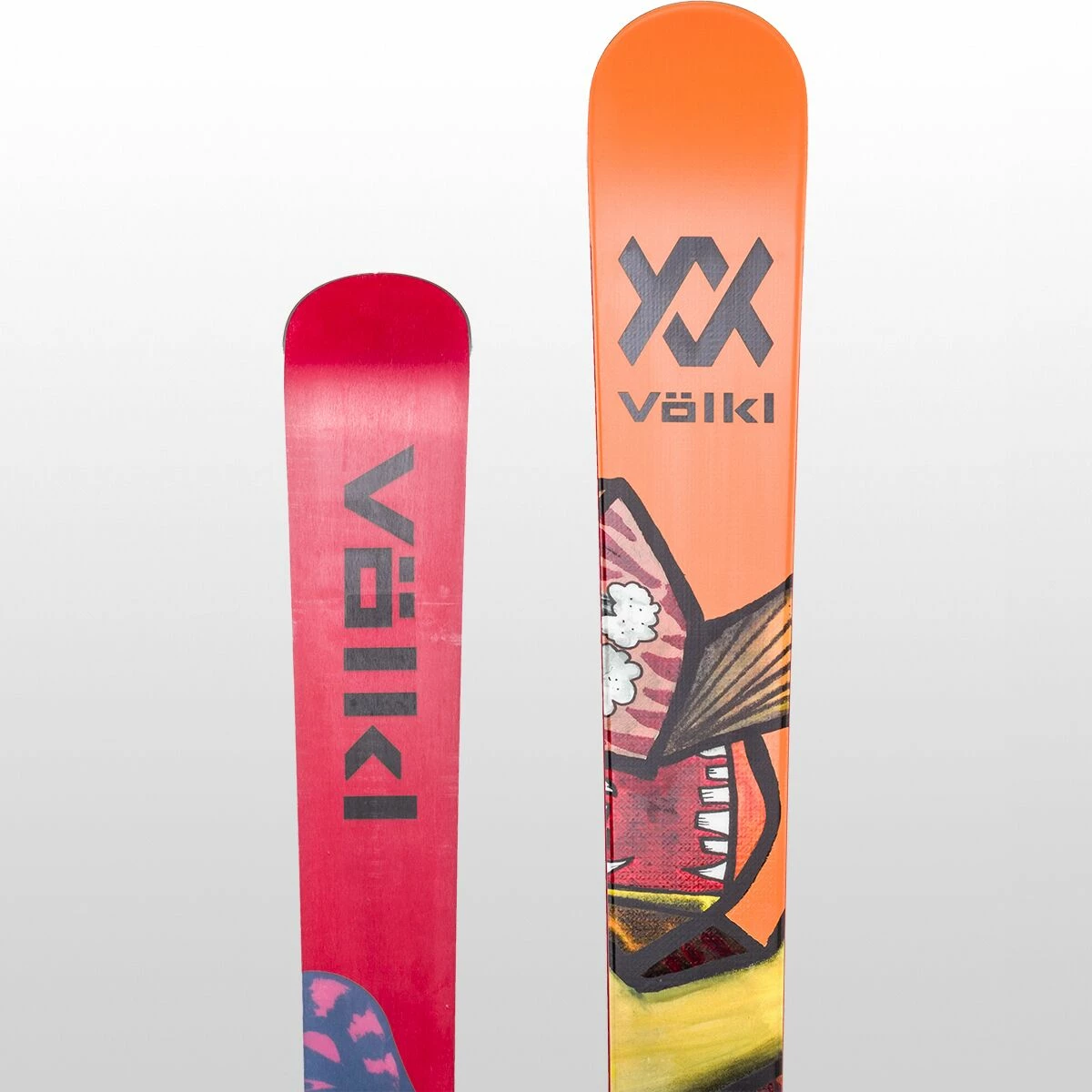 Soft, lightweight, and poppy, the Volkl Revolt 95 Ski comes well equipped to help you progress in the park, thrive on groomers, and rip through off piste terrain. The 95mm waist is now a classic waist width for park specific riding. It enables you to feel nimble and quick on rails while still offering enough stability to hit high speed jumps. When the rest of the mountain is calling you will love the blend of rocker and camber that enables solid edge hold, eases turn transitions, and limits edge catches when slashing.
