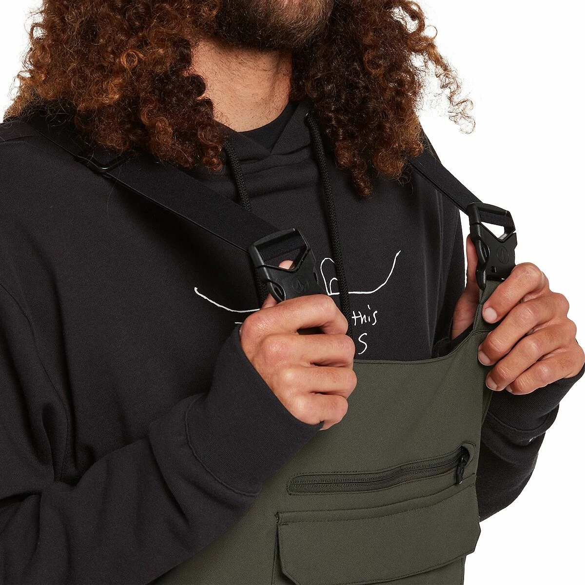 Let your inner farmer loose while keeping snow at bay with the Volcom Men’s Roan Overall Pant. This bib pant prevents snow from getting in on chest-deep powder days, and it also works well over a hoodie for slushy spring park laps. V-Science fabric shields you from wind and snow, while the V-Science lining system optimizes breathability where you need it most so you stay comfy whether you’re riding the lift in a storm or hiking a rail in the sun. Mesh-lined inseam vents help you cool off quickly when it’s warm out, while boot gaiters block out snow on powder days. Zip Tech compatibility also allows you to link the Roan up to your Volcom jacket to create the ultimate snow-proof shield in stormy conditions.